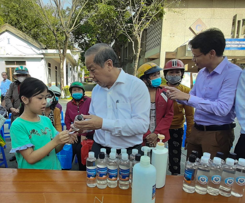 Trực tiếp thăm phòng thí nghiệm Khoa Công nghệ Hóa – Môi trường, HueIC, Chủ tịch UBND tỉnh Thừa Thiên – Huế đã lắng nghe quá trình sản xuất, cấp phát dung dịch nước rửa tay diệt khuẩn; đồng thời trực tiếp thử nghiệm và lắng nghe ý kiến của bà con nhân dân đến nhận dung dịch nước rửa tay diệt khuẩn do HueIC sản xuất tặng. Được biết hiện việc sản xuất còn gặp nhiều khó khăn do cung chưa đáp ứng nhu cầu, trước việc làm ý nghĩa của Nhà trường, Chủ tịch UBND tỉnh đã tặng ngay 50 triệu đồng để Nhà trường mua thêm nguyên vật liệu, tiếp tục sản xuất dung dịch sát khuẩn tặng người dân phòng dịch.