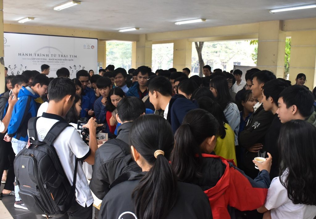 Từ rất sớm, đông đảo các bạn sinh viên, học sinh HueIC và các trường lân cận đã đến đăng ký tham gia chương trình và được uống cà phê miễn phí từ Tập đoàn Trung Nguyên Legend
