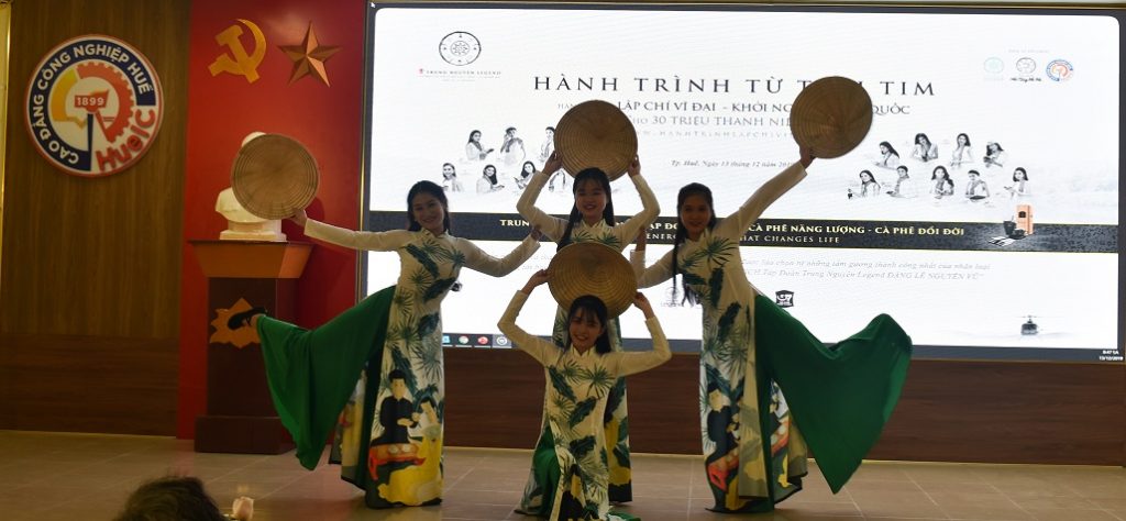 Sáng 13 tháng 12 năm 2019, tại Hội trường D1, Trường Cao đẳng Công nghiệp Huế – Bộ Công Thương (HueIC) phối hợp với Tập đoàn Trung Nguyên Legend tổ chức giao lưu Hành trình từ trái tim: Hành trình lập chí vĩ đại – Khởi nghiệp kiến quốc. PGS.Tiến sĩ Trần Hữu Đức – Giám đốc Đào tạo, Tập đoàn Trung Nguyên Legend, Á hậu Vũ Hoàng My, Nàng thơ xứ Huế Ngọc Trân đã tham gia chương trình và giao lưu cùng đông đảo các sinh viên, học sinh HueIC.