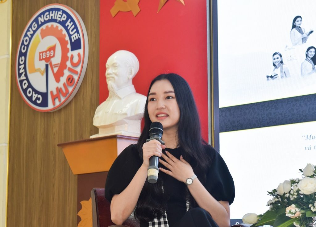 Á hậu Vũ Hoàng My và Nàng thơ xứ Huế Ngọc Trân cũng có những chia sẻ chân thành với các bạn sinh viên, học sinh về thành công và ý chí