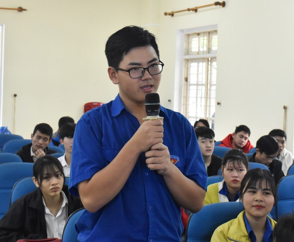 Bạn Dương Hoàng Minh Đạt, học sinh lớp 10/4 (ngành công nghệ Ô tô, HueIC) là một trong nhiều bạn đã đặt các câu hỏi thú vị để giao lưu với các diễn giả