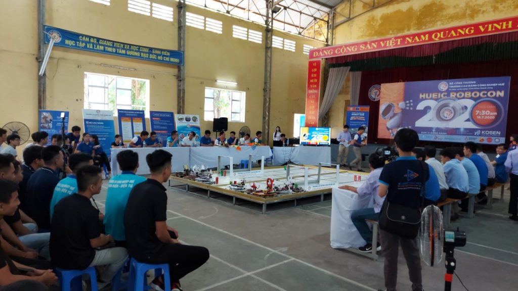 Sáng ngày 19/6/2020, các đội Robocon của khoa Cơ khí, khoa Nhiệt lạnh – Xây dựng, cùng các thầy cô đã có mặt tại tiền sảnh của trường THPT Thuận An. Đây là lần đầu tiên các bạn sinh viên HueIC được hãnh diện trình diễn một trận bóng mà cầu thủ là những chú robot 2 bánh do chính các bạn thiết kế.