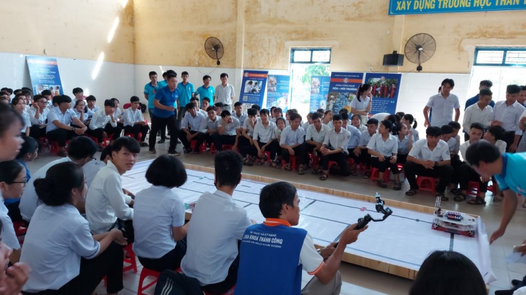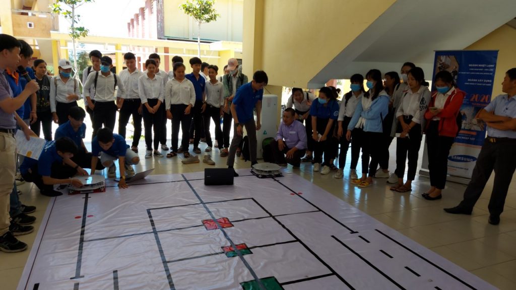 Sau nhiều ngày luyện tập và làm quen, ngày 26/6/2020, các đội chơi là các bạn học sinh lớp 11 của trường THPT Phú Bài đã tham gia thi đấu robot. Dưới sự hướng dẫn của các sinh viên HueIC, 4 đội chơi của trường THPT Phú Bài đã vào cuộc chơi thực hiện những nhiệm vụ đầy khó khăn mà lần đầu tiên các em được tham gia với những chú robot.