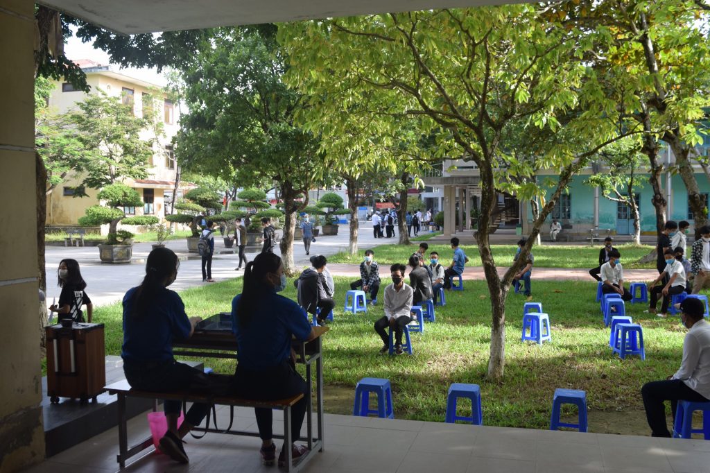 Học sinh đến làm thủ tục nhập học được tổ chức đảm bảo các quy định về phòng chống dịch Covid-19