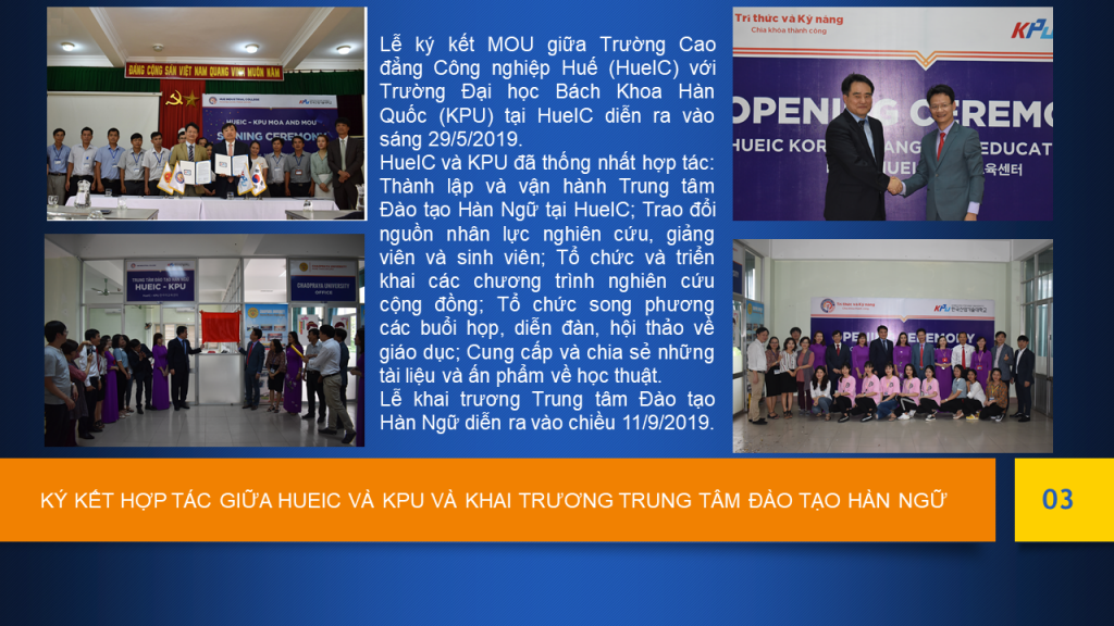 03 – Ký kết MUO giữa HueIC và KPU, thành lập Trung tâm đào tạo Hàn Ngữ tại HueIC