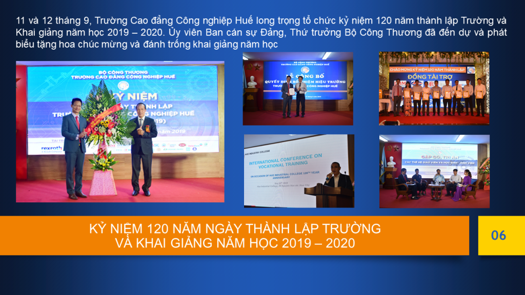 Năm 2019 dần khép lại. Đây là năm có nhiều dấu ấn quan trọng của Trường Cao đẳng Công nghiệp Huế (HueIC), Bộ Công Thương; Đặc biệt, đây là năm kỷ niệm 120 năm thành lập Trường (1899 – 2019).