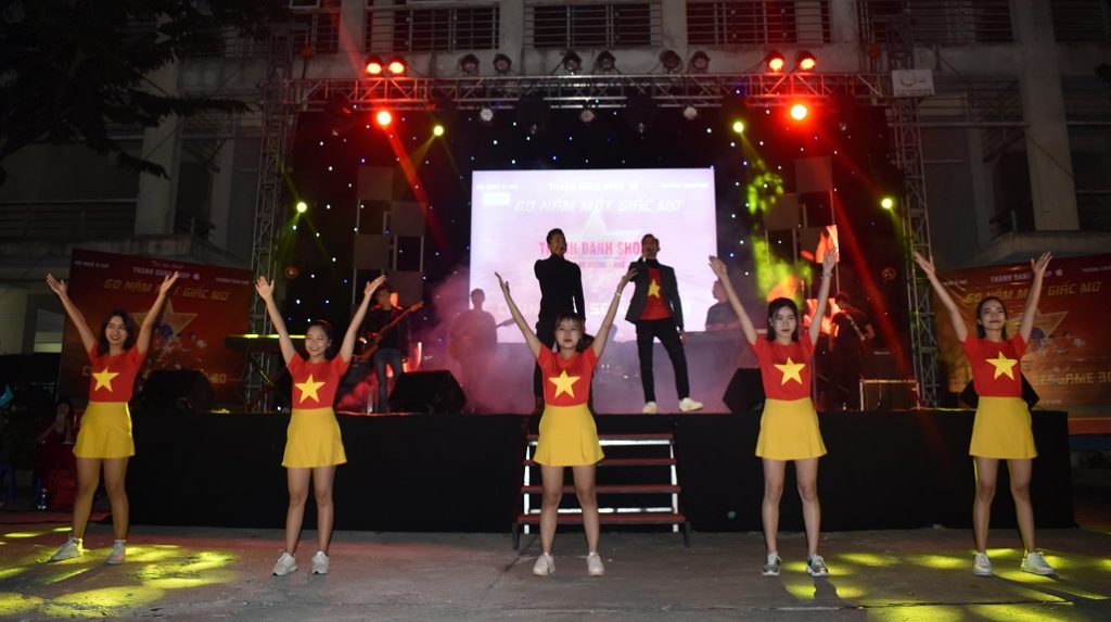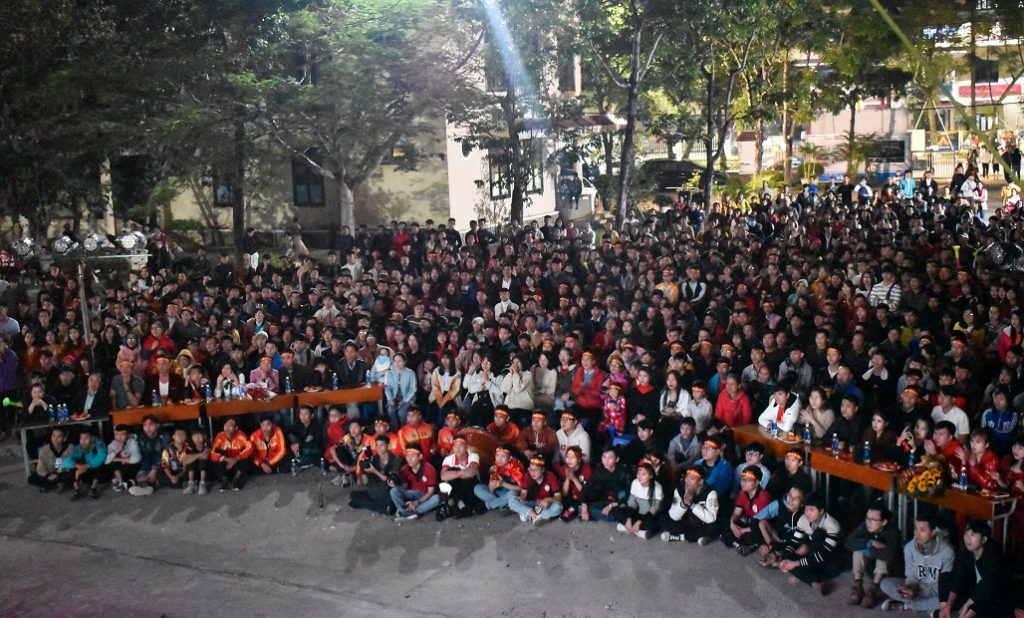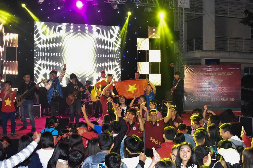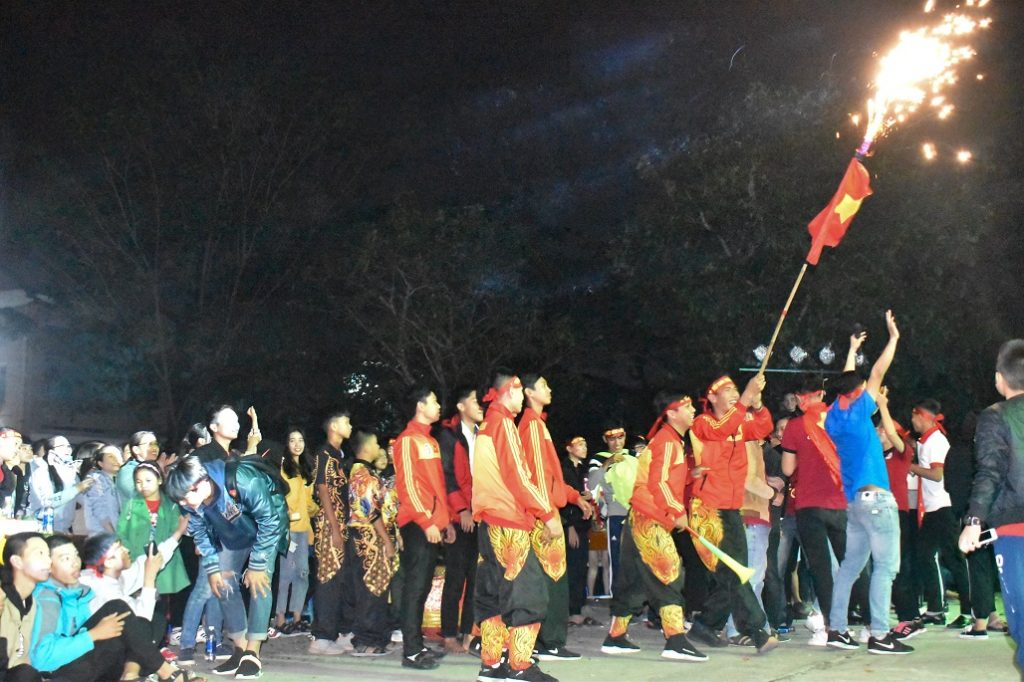 17h00, hàng nghìn cổ động viên đã đến sân trường để tham gia chương trình hưởng ứng trước trận đấu