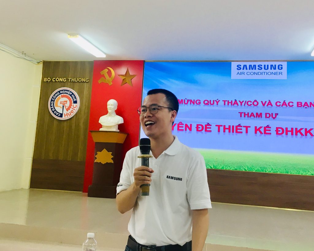 Sáng 28 tháng 10 năm 2022, tại Trường Cao đẳng Công nghiệp Huế (HueIC), công ty TNHH Điện tử Samsung Vina (Samsung Vina) phối hợp với Khoa Nhiệt lạnh – Xây dựng, HueIC tổ chức Hội thảo chuyên đề “Thiết kế điều hòa không khí Samsung” dành cho sinh viên chuyên ngành Công nghệ Nhiệt – Điện lạnh khóa 20CD.