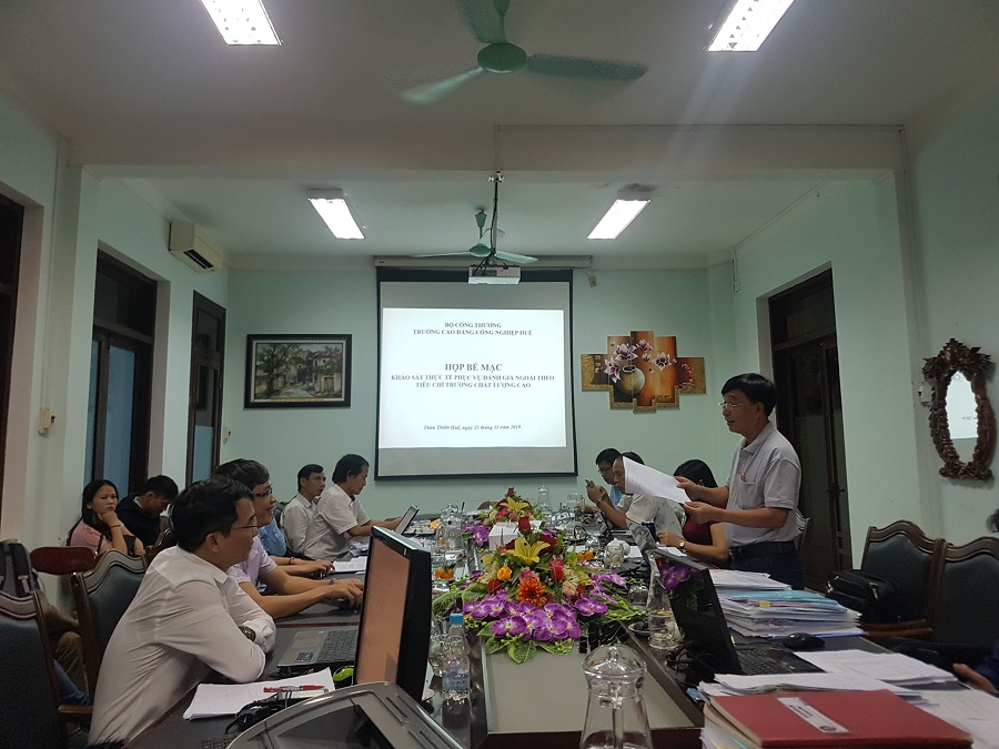 Từ ngày 21/11 đến ngày 23/11/2019, Đoàn đánh giá ngoài được thành lập theo quyết định số 1390/QĐ-TCGDNN ngày 11/11/2019 của Tổng cục trưởng Tổng cục Giáo dục nghề nghiệp đã tiến hành khảo sát thực tế phục vụ công tác đánh giá ngoài (thí điểm) theo tiêu chí trường cao đẳng chất lượng cao tại trường Cao đẳng Công nghiệp Huế (HueIC), Bộ Công Thương.
