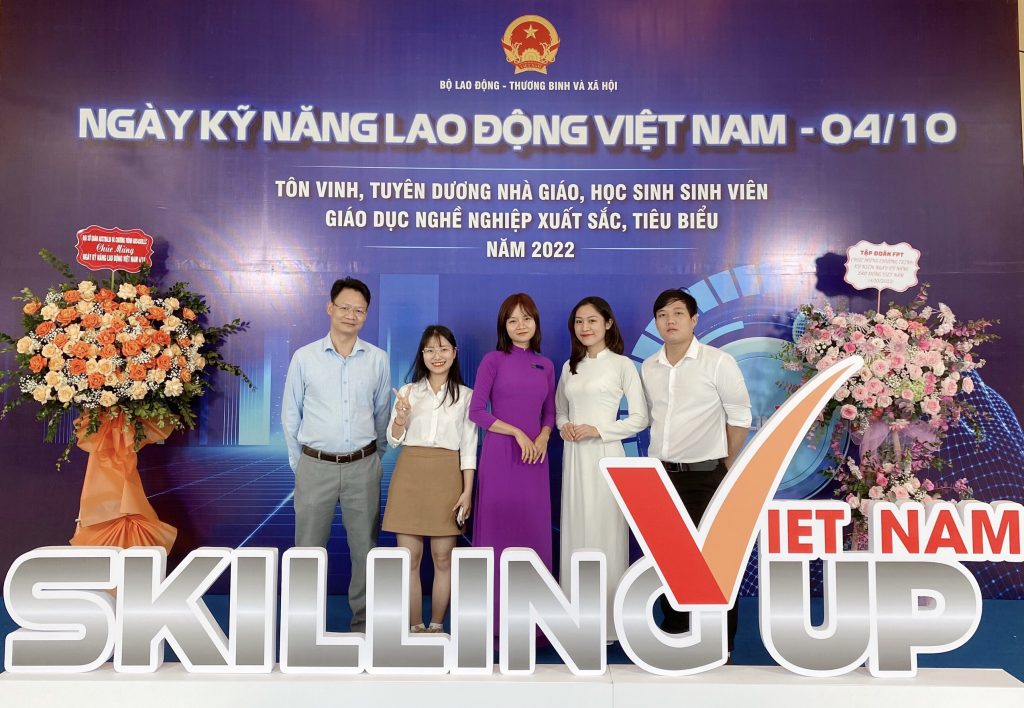 Đoàn cán bộ và sinh viên HueIC tham dự chương trình Kỷ niệm ngày Kỹ năng lao động Việt Nam (04.10) do Bộ Lao động – Thương binh và Xã hội tổ chức. Tại chương trình, Nguyễn Quang Đức cùng 2 bạn sinh viên HueIC: Nguyễn Thị Tuyết và Lê Thị Thu Huế được vinh dự được tuyên dương là sinh viên Giáo dục nghề nghiệp xuất sắc, tiêu biểu toàn quốc năm 2022