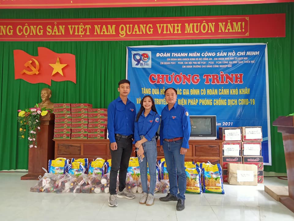 Ngày 04 tháng 3 năm 2021, Chi đoàn viên chức – người lao động, trực thuộc Đoàn thanh niên trường Cao đẳng Công nghiệp Huế (HueIC) đã tổ chức chương trình Trao tặng quà hỗ trợ cho các gia đình có hoàn cảnh khó khăn và tuyên truyền biện pháp phòng chống dịch Covid-19 tại xã Hồng Thuỷ, huyện A Lưới, tỉnh Thừa Thiên – Huế.