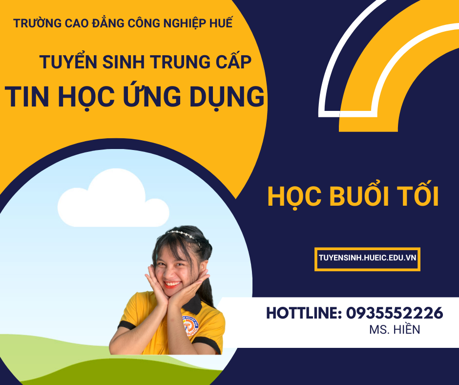 Trường Cao đẳng Công nghiệp Huế thông báo tuyển sinh các ngành (trình độ Trung cấp) học buổi tối và các ngày cuối tuần, cụ thể như sau: