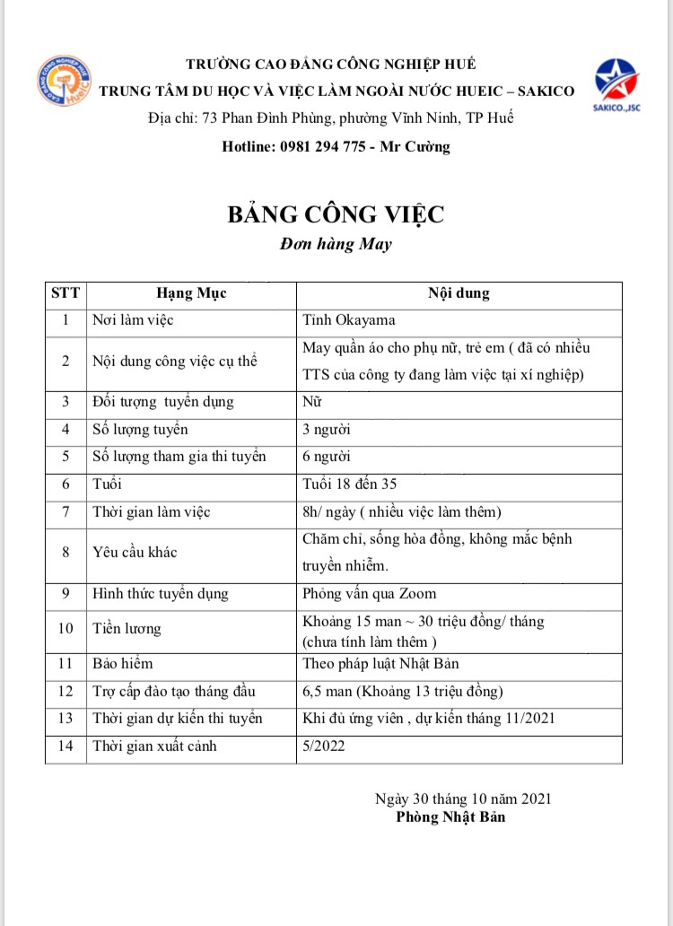 • THÔNG BÁO TUYỂN DỤNG NHÂN VIÊN VẬN HÀNH CNC LASER