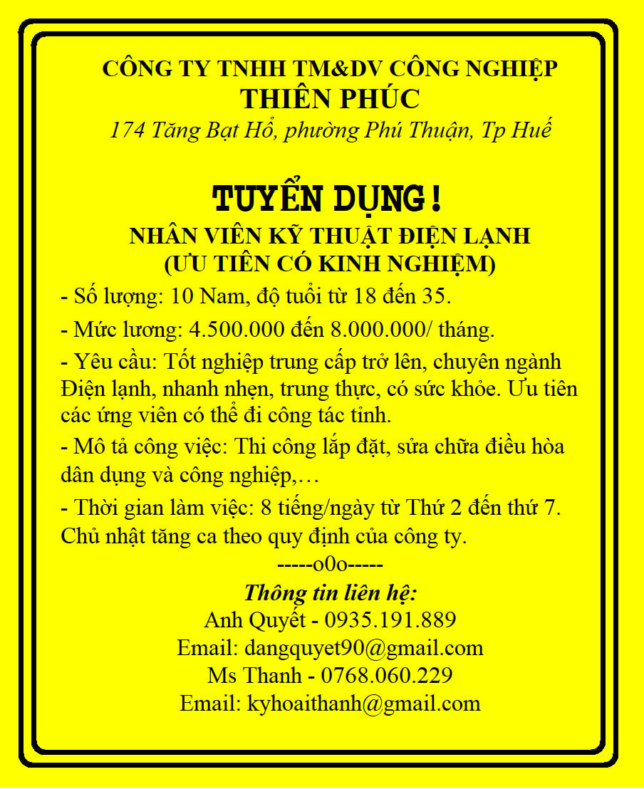 • THÔNG BÁO TUYỂN DỤNG NHÂN SỰ