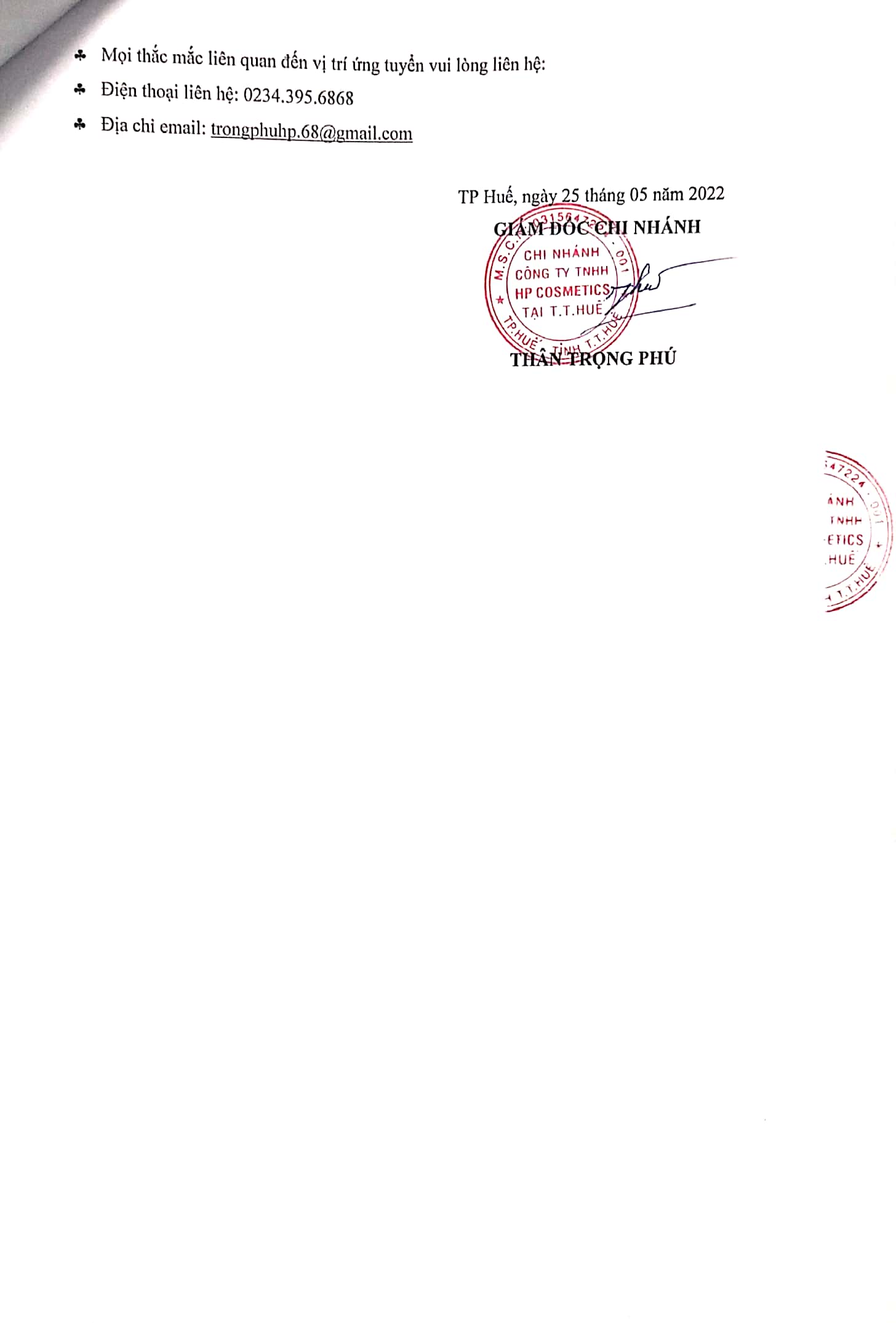 3. HP COSMTICS - Chi nhánh miền Trung tuyển dụng