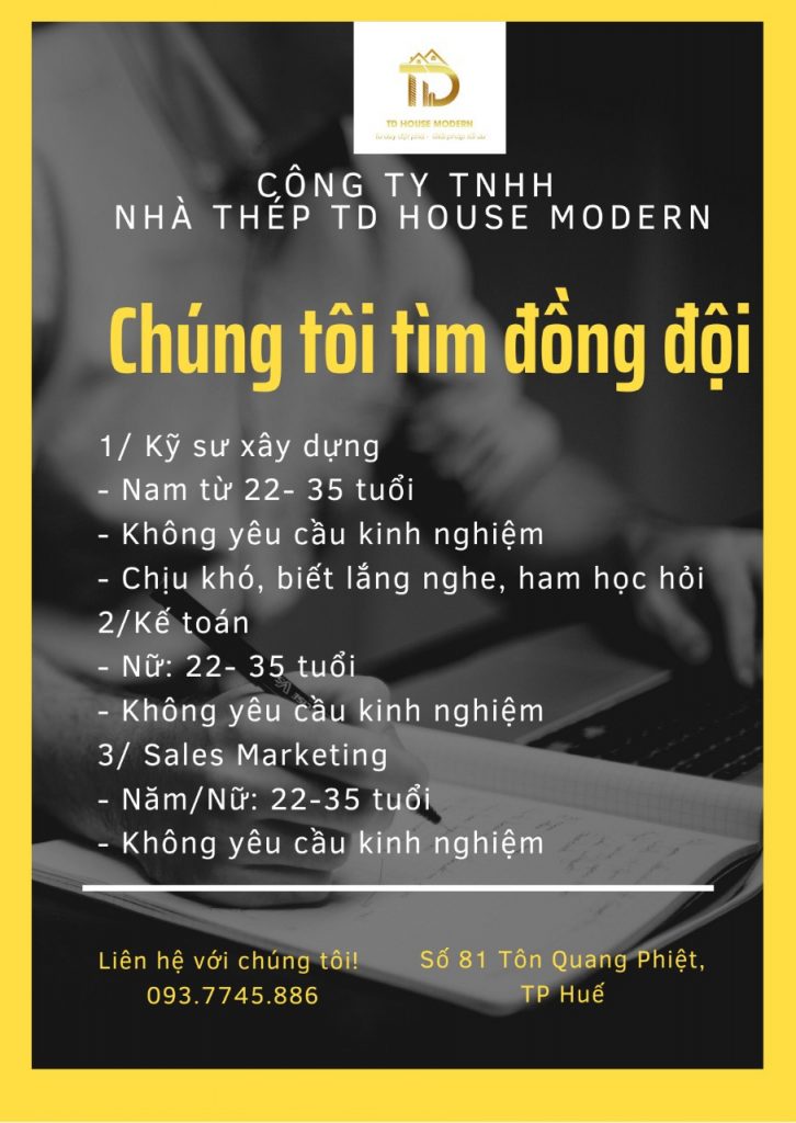 Nhà Thép TD HOUSE MODERN tuyển dụng các vị trí: